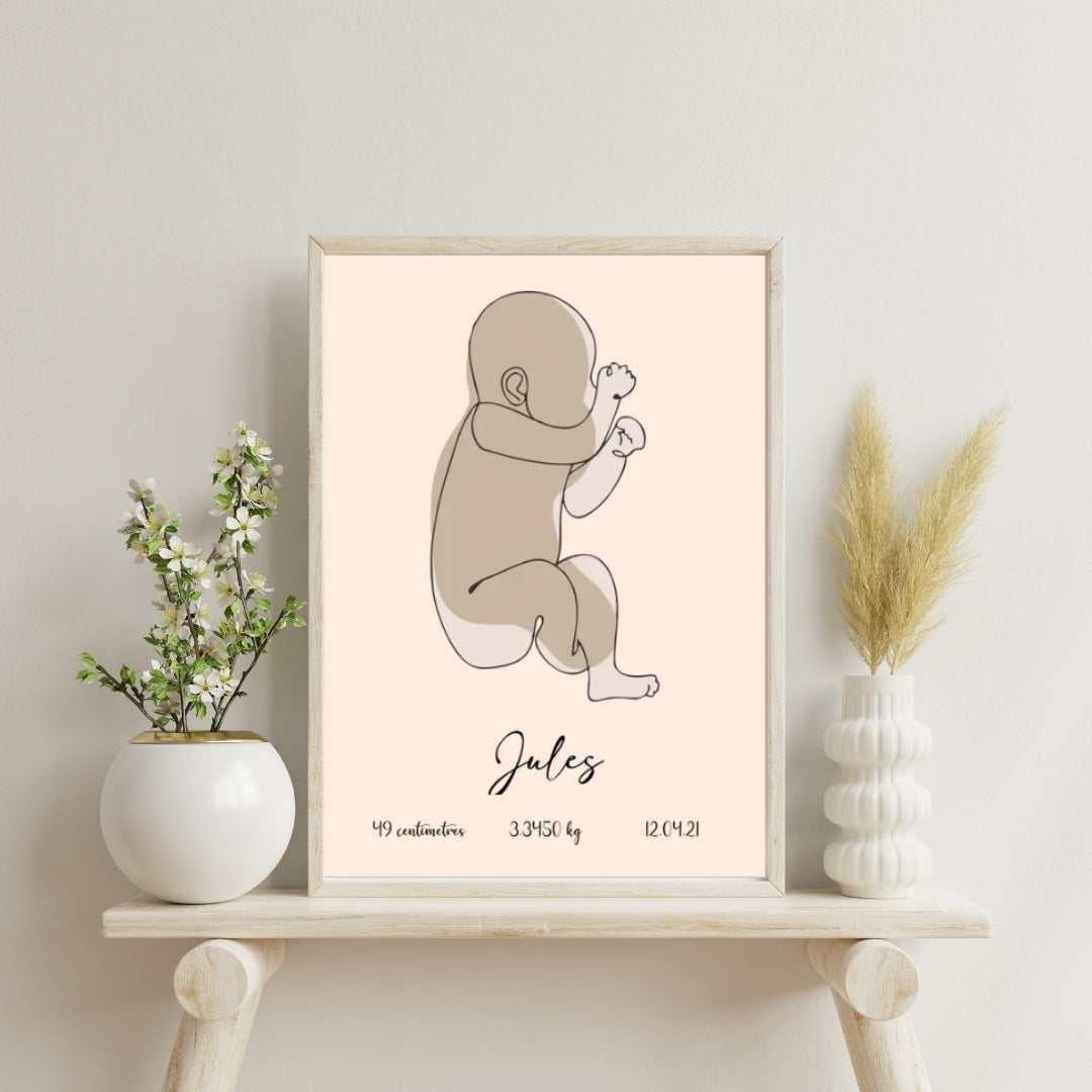 Offrez à votre bébé un souvenir inoubliable avec notre cadre naissance personnalisé ! Ajoutez des détails précieux comme sa taille, son poids et sa date de naissance pour capturer l’essence de ses premiers instants. Ce cadre au design minimaliste apportera une touche de douceur et de tendresse à votre intérieur, rappelant chaque jour la magie de sa naissance et l’amour que vous lui portez.