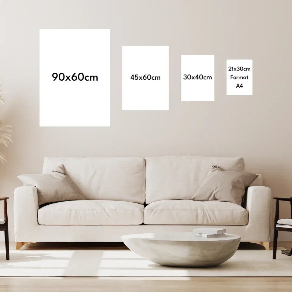 Notre gamme de cadre personnalisés, disponibles en plusieurs formats, du grand 90x60 cm au plus petit 21x30 cm (format A4). Trouvez la taille idéale pour mettre en valeur vos photos personnelles et créez une décoration unique qui reflète vos souvenirs dans votre espace.