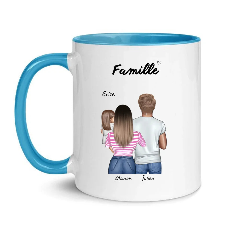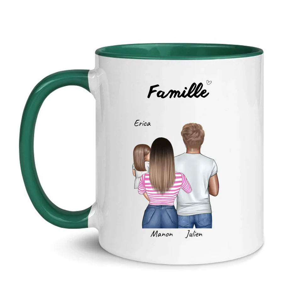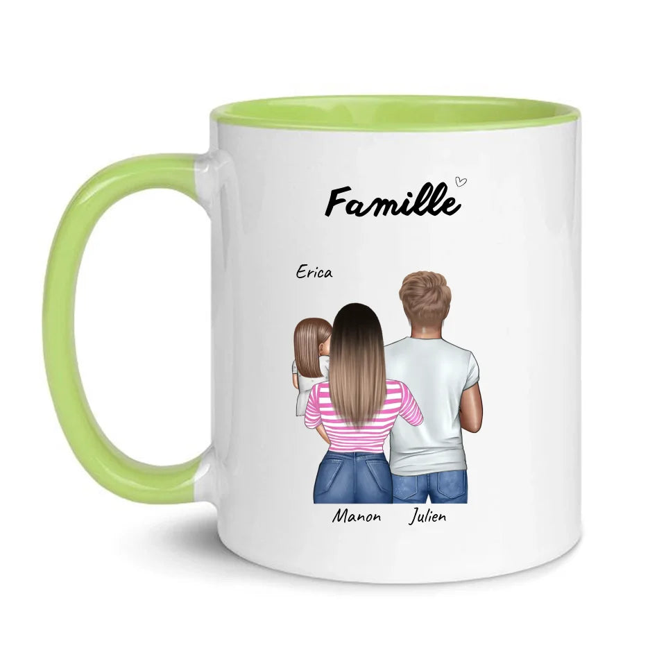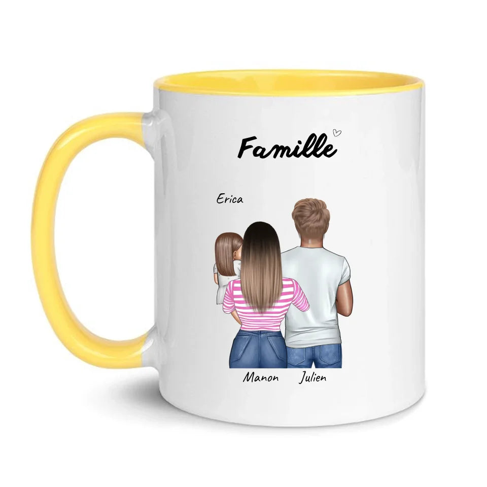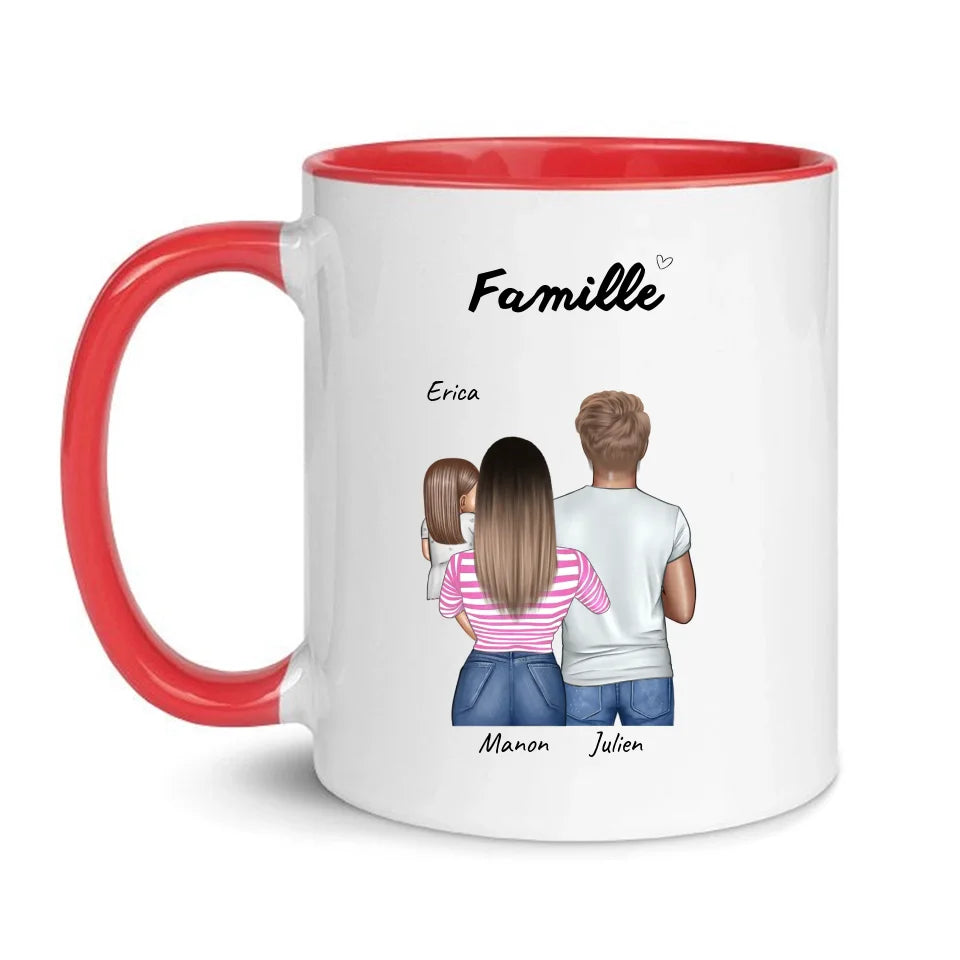 Offrez un cadeau unique avec la tasse "Famille" personnalisée avec les prénoms des enfants. Parfaite pour partager des moments chaleureux, cette tasse originale célèbre l'amour familial. Idéale pour un anniversaire, Noël ou toute occasion spéciale. Créez un souvenir précieux et personnalisé.