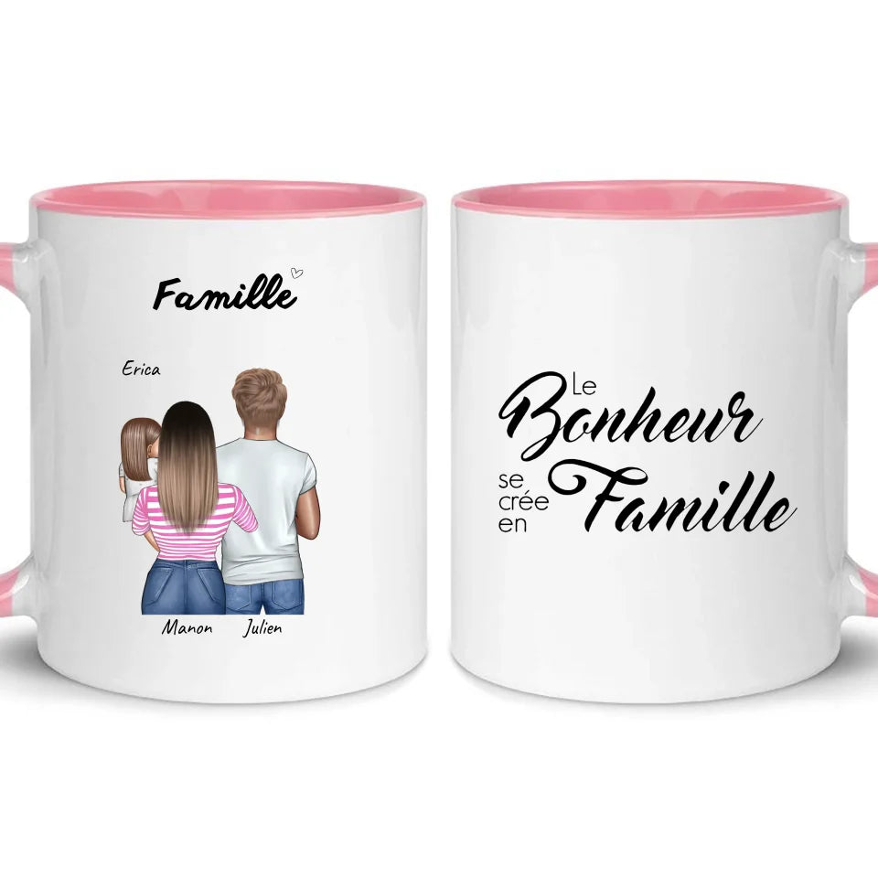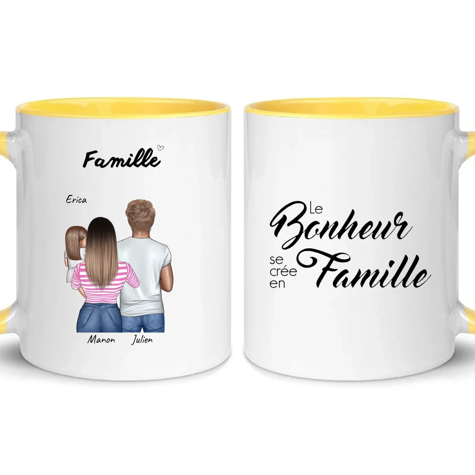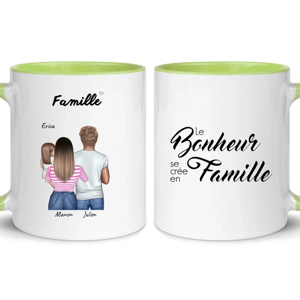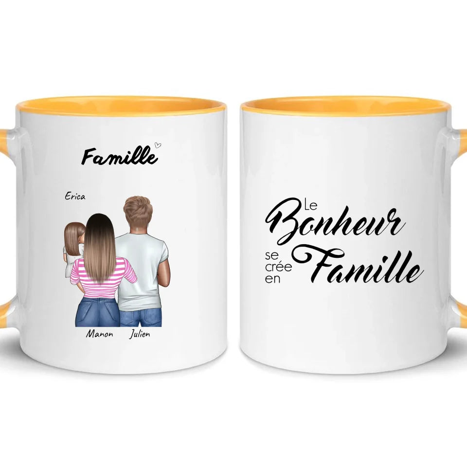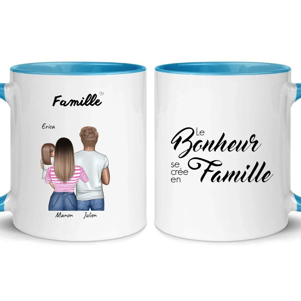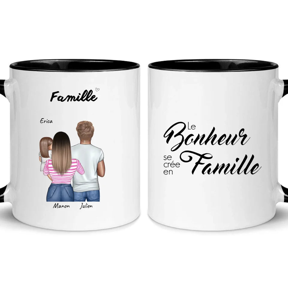Offrez un cadeau unique avec la tasse "Famille" personnalisée avec les prénoms des enfants. Parfaite pour partager des moments chaleureux, cette tasse originale célèbre l'amour familial. Idéale pour un anniversaire, Noël ou toute occasion spéciale. Créez un souvenir précieux et personnalisé.