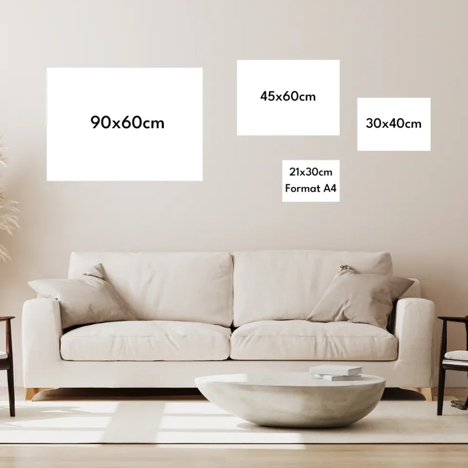 Nous acceptons les photos au format JPEG et PNG. Pour un résultat optimal, nous vous recommandons de télécharger des images en haute résolution afin d’assurer une bonne qualité d’impression.